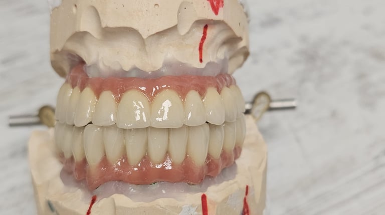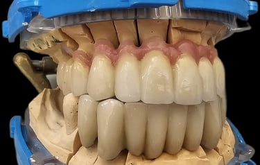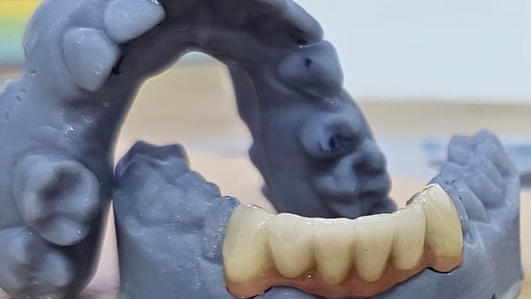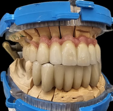 Diseño digital y acabado manual para prótesis fijas que combinan ajuste perfecto y belleza natural.